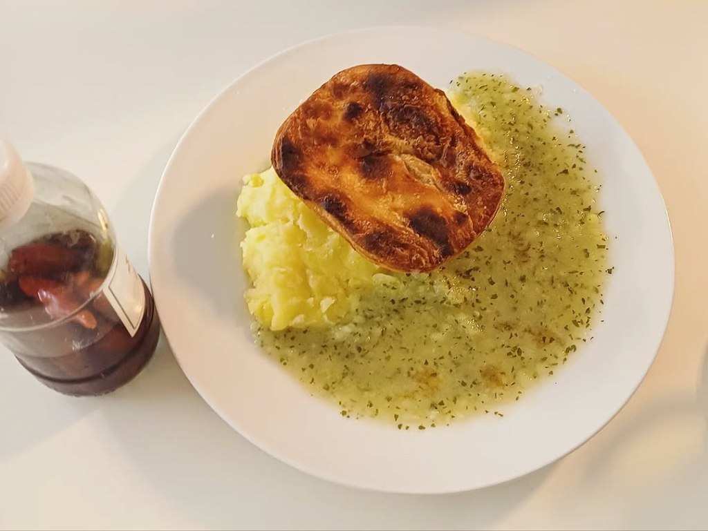 Properly tasty. The bacon in my breakfast set was memorable. My colleague had the Manze’s pie and mash, proudly noting it was the only pie on the menu – as it should be.
