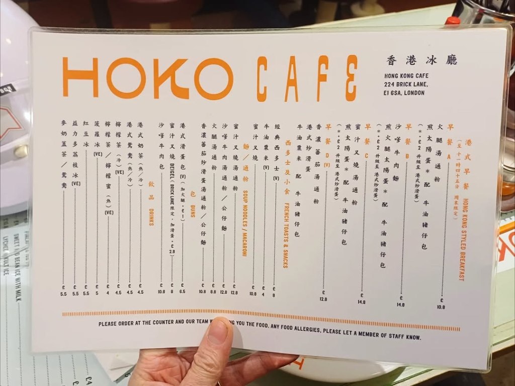 Opened in 2023, HOKO Café fits right in. Created by Nicole Ma and Ryan Leung to bring the everyday comfort of a Hong Kong-style diner to East London, it naturally connects with greasy spoon culture. Both grew from necessity and openness: no faff, quick service, and a place for everyone. The spirit is shared, the flavour is unique.